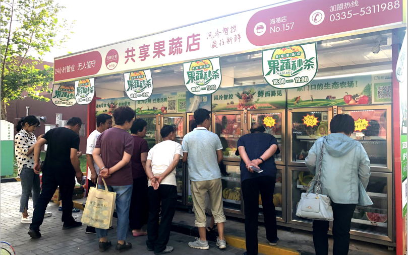 第一,共享果蔬店可靈活選址搶先一步開在消費者樓下,顧客不用走出社區,上樓回家前,順手幾分鐘就能買到新鮮的瓜果蔬菜;