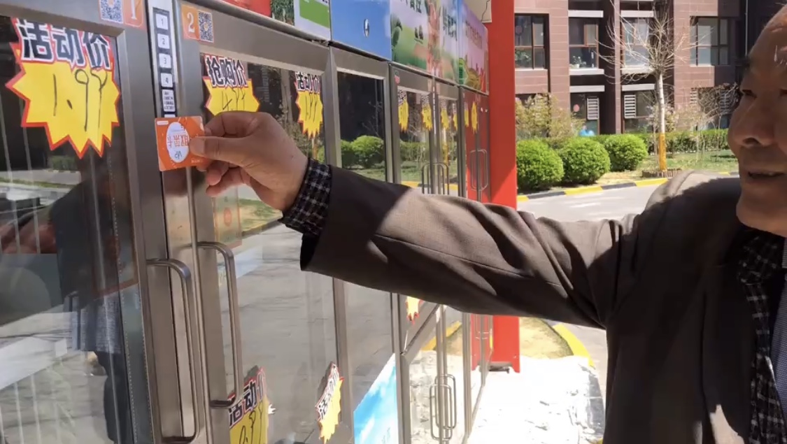 首先,將會員卡靠近共享果蔬店刷卡感應區;