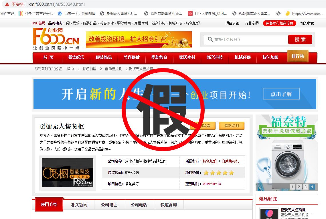 從2020年上半年到現在,全國各地出現了許多效仿覓櫥共享果蔬店項目的“跟風者”,覓櫥也展現了對追隨者極大的包容。但近期網絡上一些“追隨者”不僅拿著覓櫥的運營物料做自己品牌虛假的宣傳推廣,甚至直接打著覓櫥品牌的旗號開始迷惑、欺騙客戶。其慣用伎倆是:在網絡上大肆宣傳覓櫥的品牌,然后以覓櫥的名義獲取客戶相關信息,然后再與客戶溝通的過程中,再試圖對客戶的項目意向強行轉化,轉化成與覓櫥果蔬店項目相關的其他品牌項目,或是與覓櫥項目根本毫無關系的其他項目。這種行為不僅嚴重擾亂社區無人售貨市場,更是以惡劣的手段對廣大客戶進行迷惑、欺騙的行為。