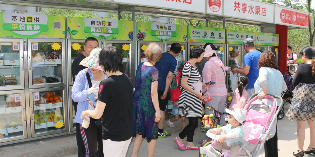 在許多的住宅小區樓底下的共享果蔬店,是指放到社區的樓底下的一組無人售貨柜,里邊能夠銷售各種各樣貼近普通百姓生活的商品。如水果蔬菜類的生鮮產品,也可以是飲料類產品像礦泉水,紅牛這些、包含早餐或快餐類商品、也可以包含小孩的玩具,小寵物的用具,小寵物吃的精飼料一類的都是可以。這類新的在住宅小區樓底下的共享果蔬店,所使用的無人售貨柜是根據免密支付技術的發展,及物聯網應用成熟及物聯網流量花費減少的產物,無人售貨柜掃碼或刷卡開門,開門自由挑選各種各樣貨物,關門自動免密扣費。消費感受好,特別適合最新一代顧客的消費習慣,一個購買過程能夠在10秒內完成,減少了排隊,也可以挑到自己喜歡的產品再拿出來結算,感受很好。